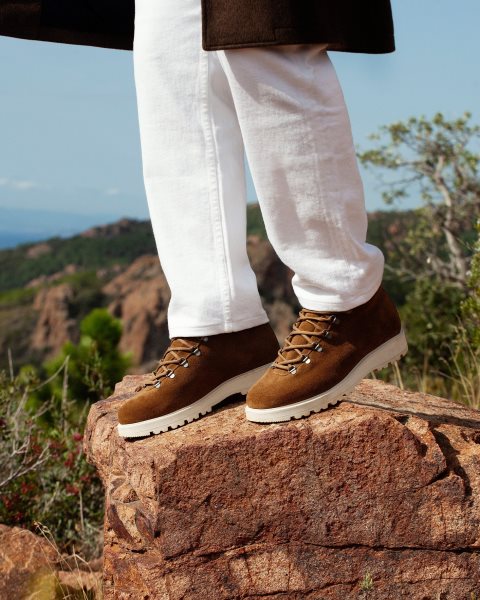 Goodyear welted construction Handcrafted in Portugal Premium water repellent suede from British Charles F. Stead Leather board heel stiffeners and cork filling