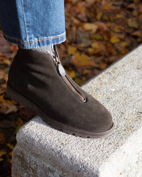 Goodyear welted construction Handcrafted in Portugal Premium water repellent suede from British Charles F. Stead Leather board heel stiffeners and cork filling